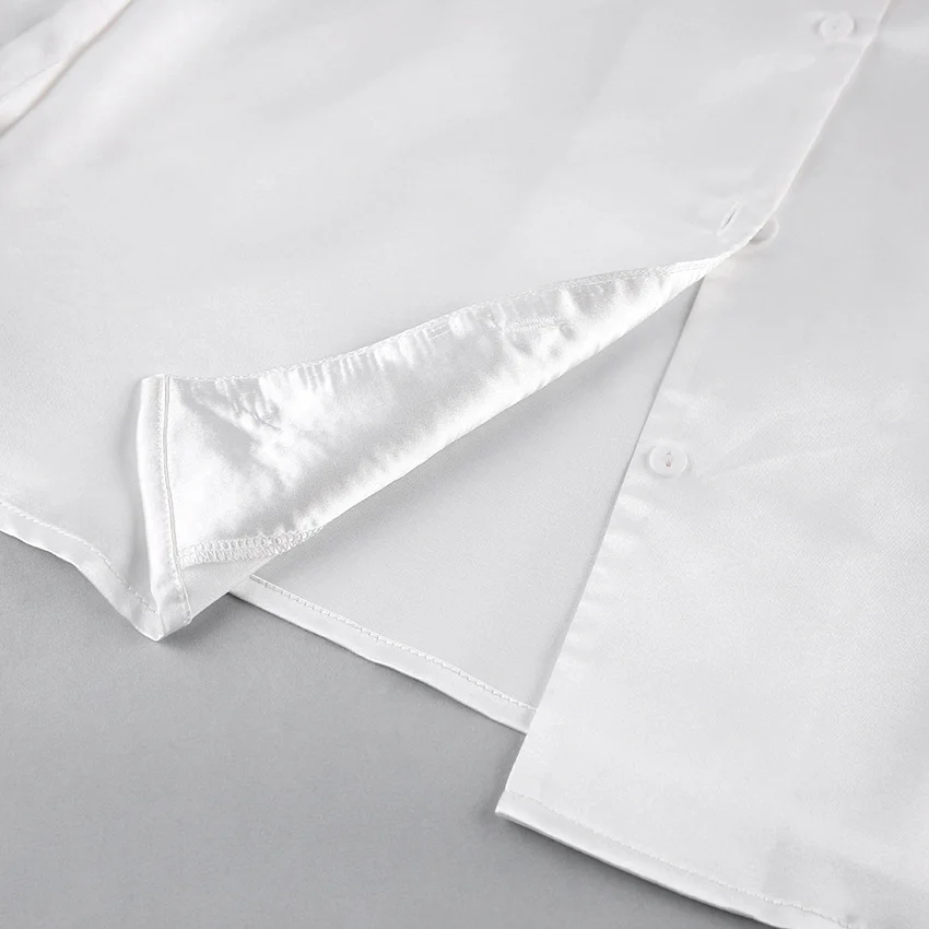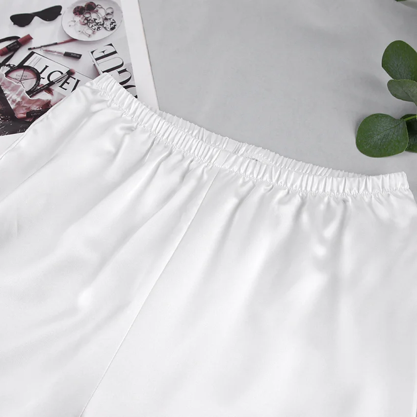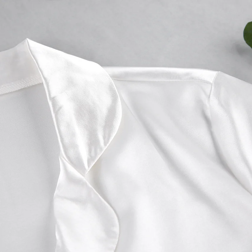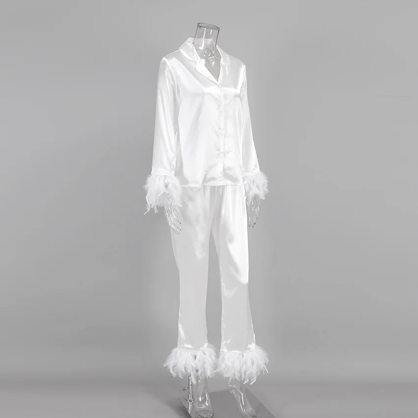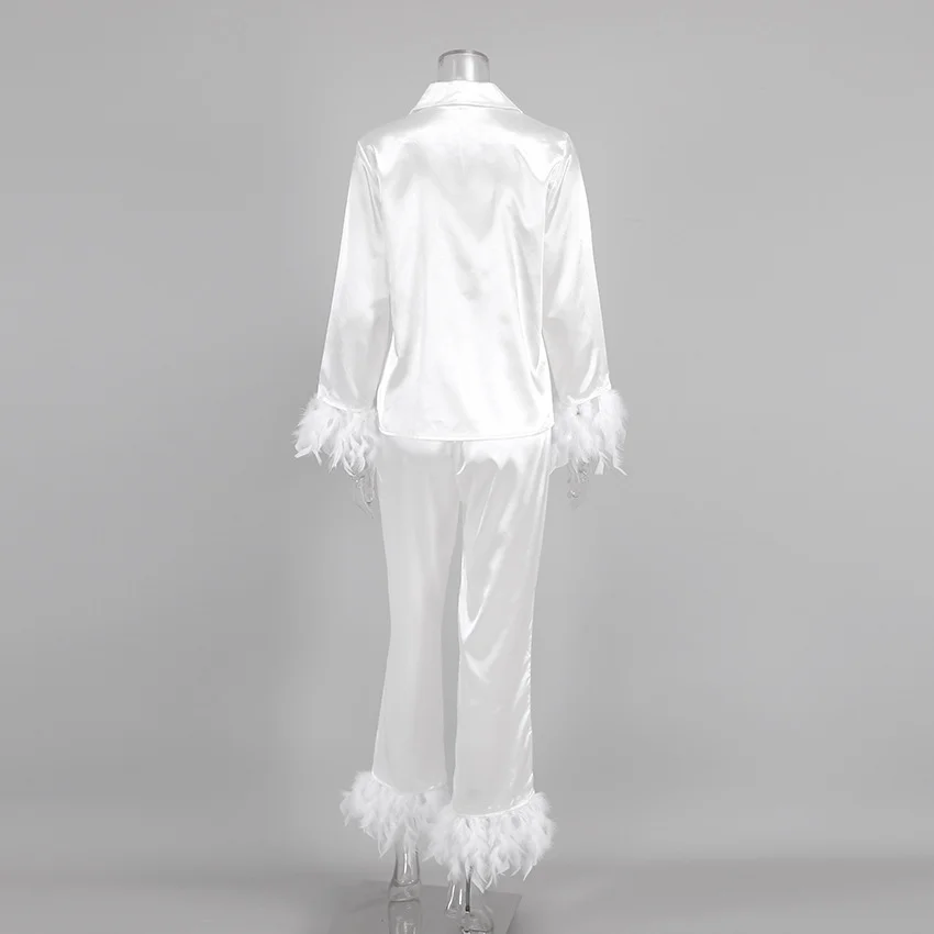 Ensemble 2 pièces à manches longues et pantalon long, pyjama blanc pour demoiselle d'honneur, robe de soirée en satin à revers multicolore, élasticité, pyjama sexy pour femme