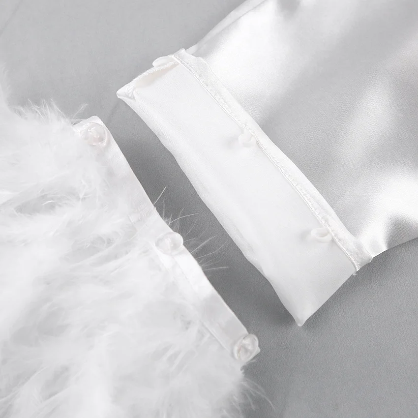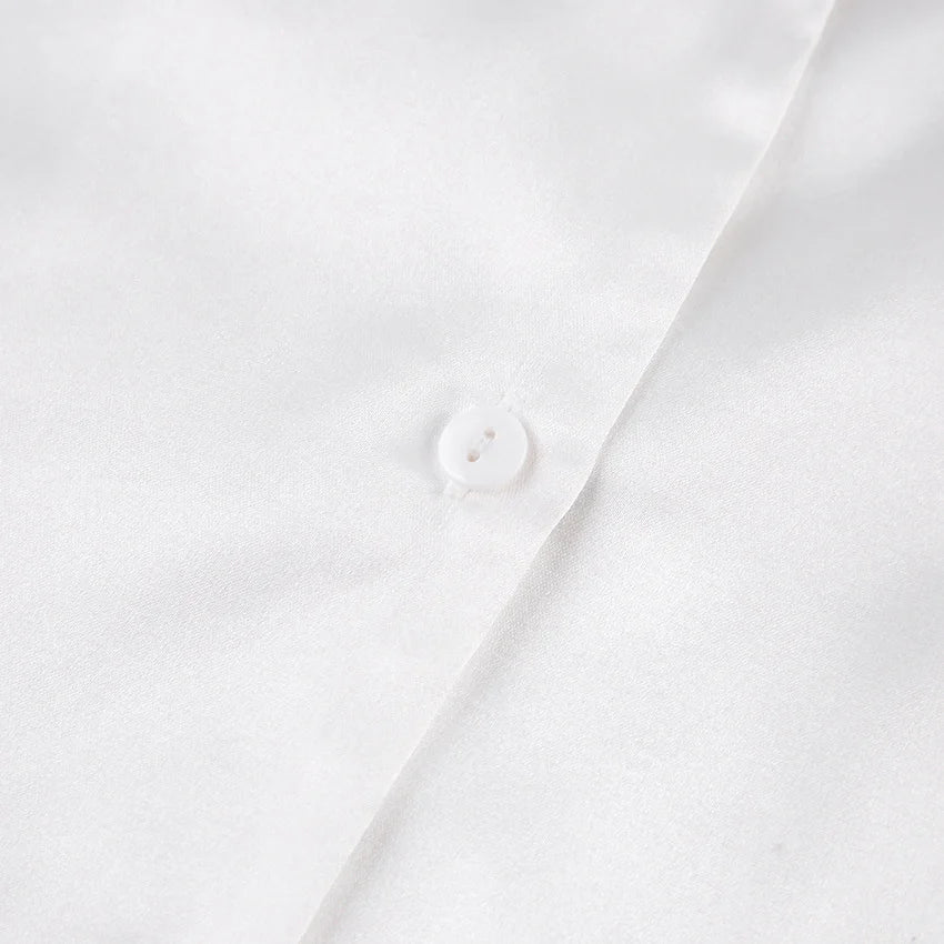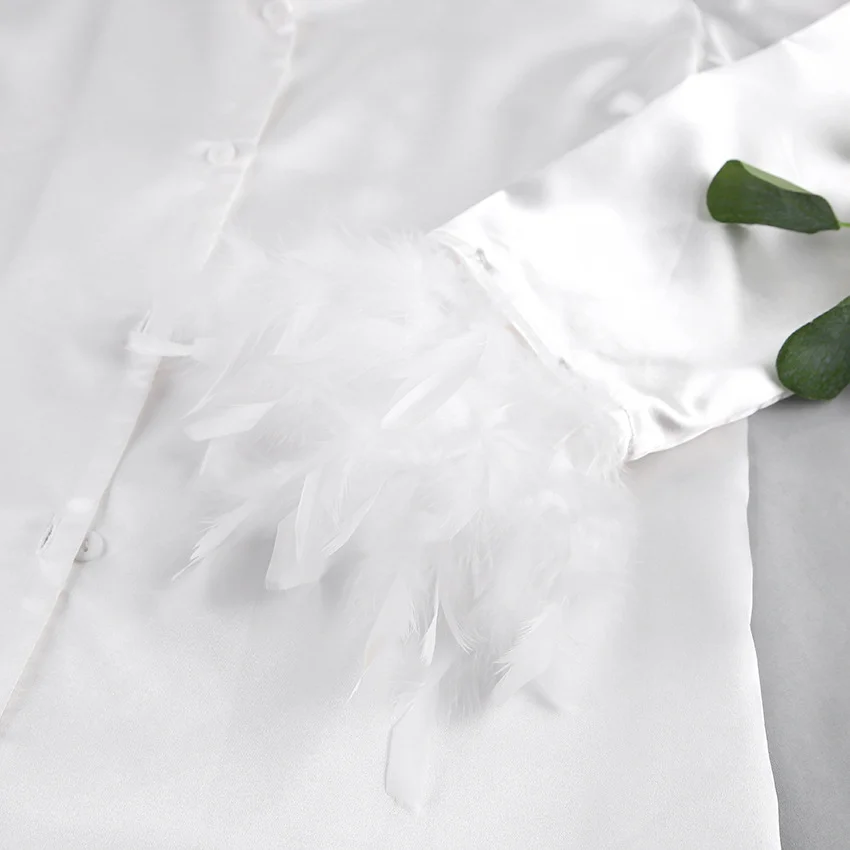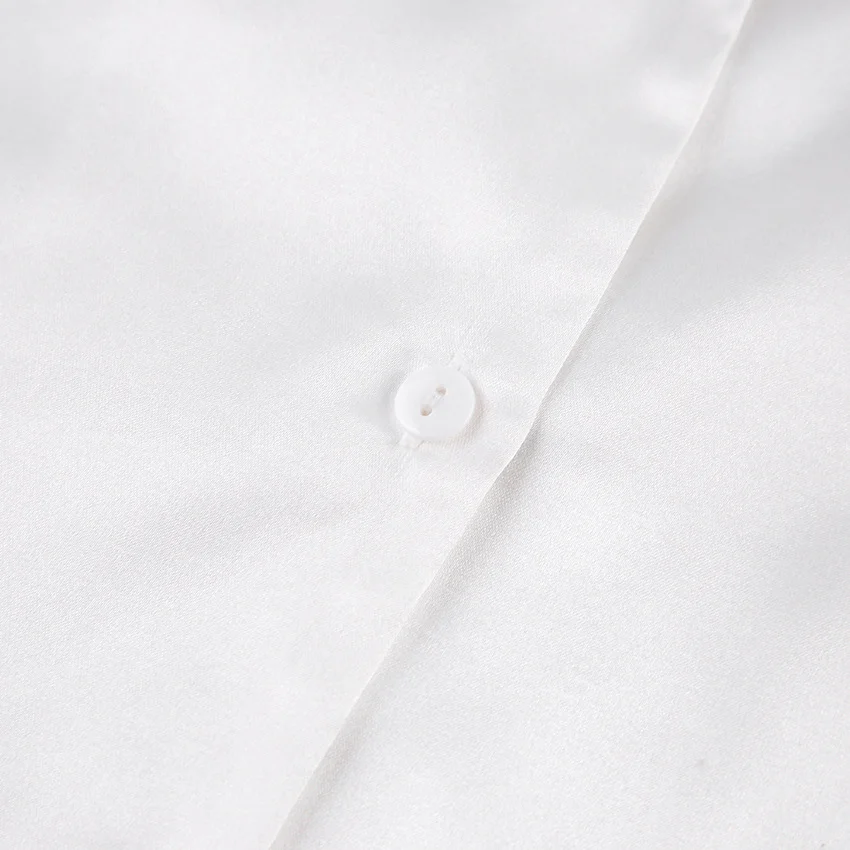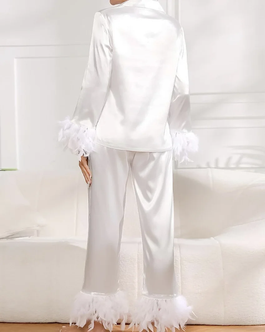 Ensemble 2 pièces à manches longues et pantalon long, pyjama blanc pour demoiselle d'honneur, robe de soirée en satin à revers multicolore, élasticité, pyjama sexy pour femme