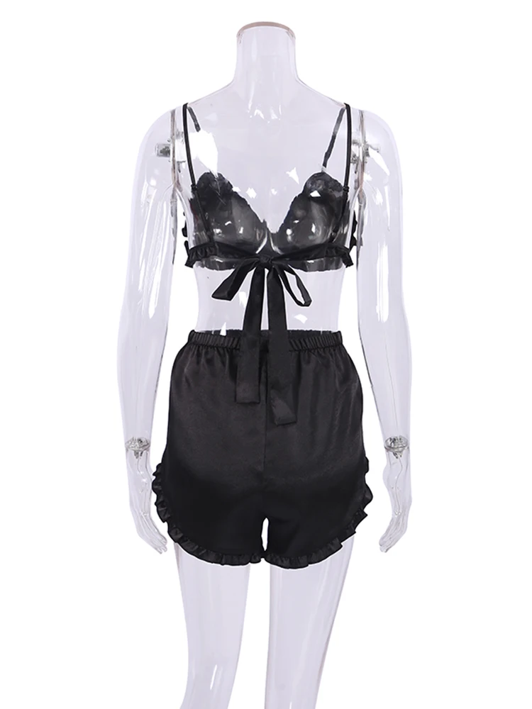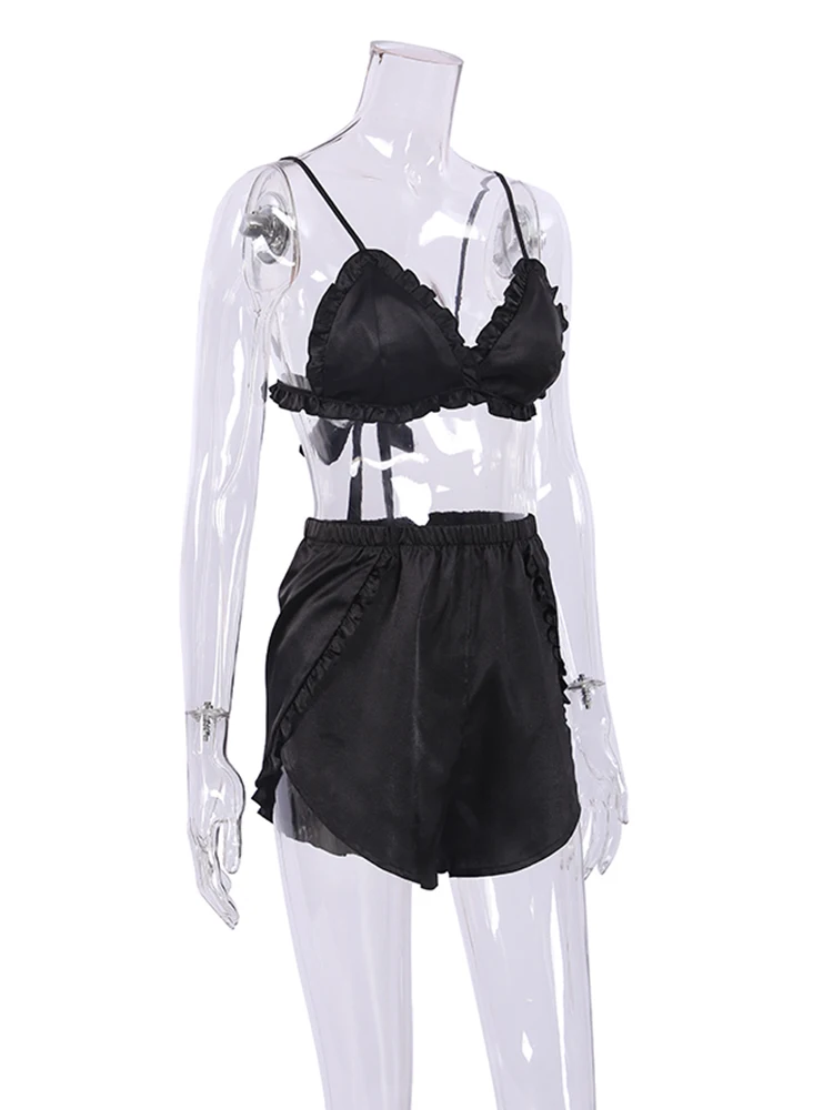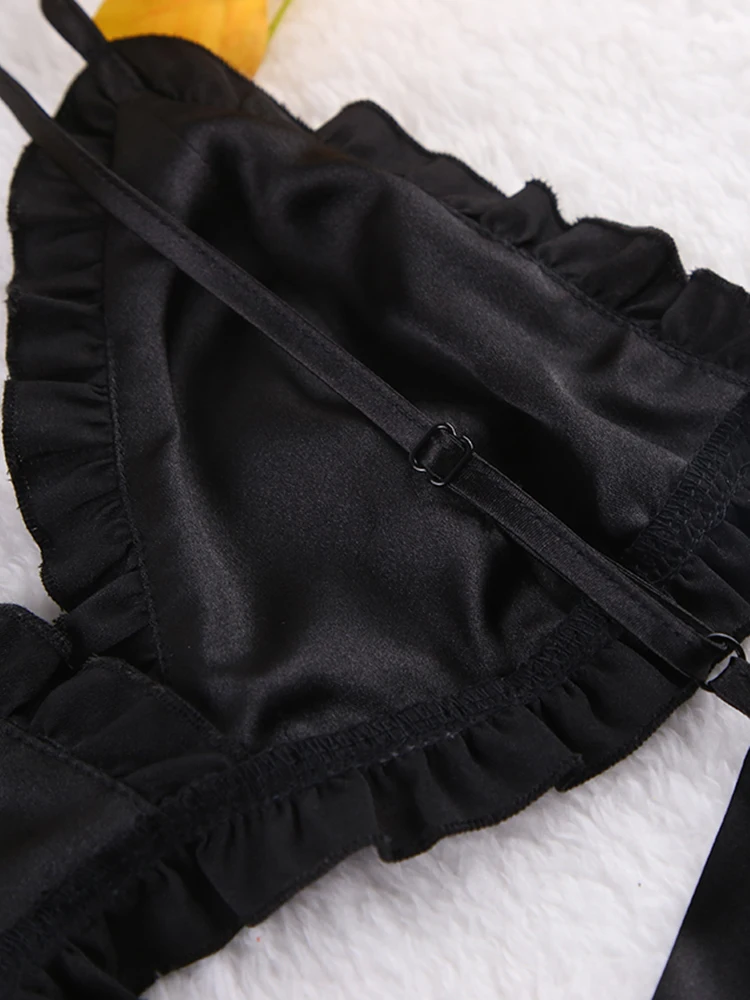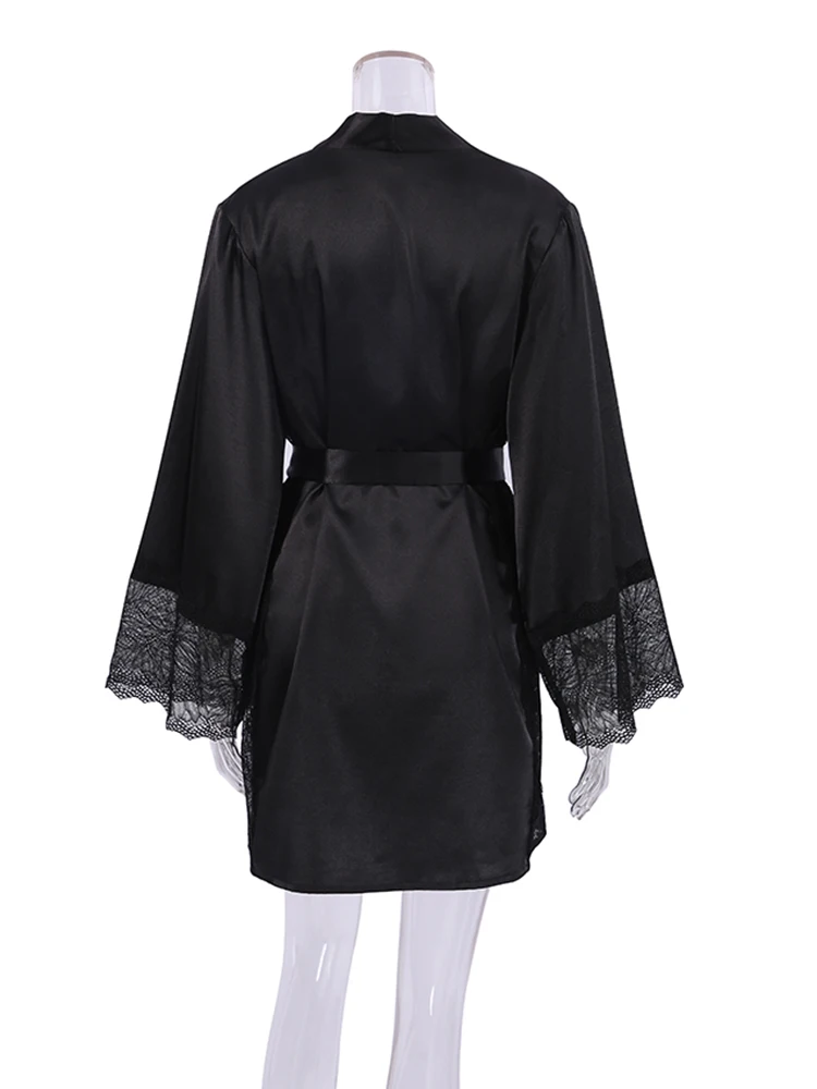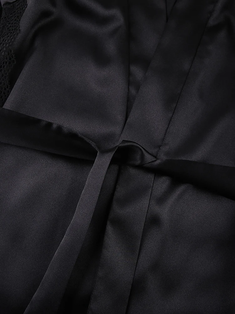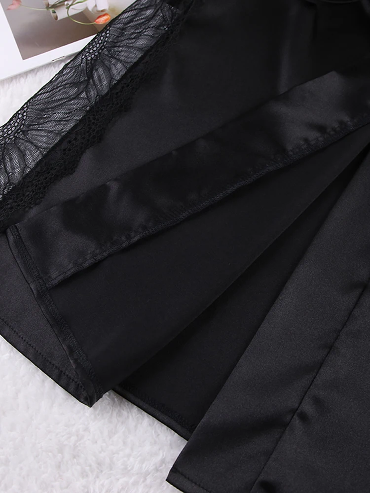 Ensembles de pyjama en dentelle patchwork avec soutien-gorge et sous-vêtements sexy en satin pour femme, 3 pièces, vêtements de nuit, peignoirs, 2023