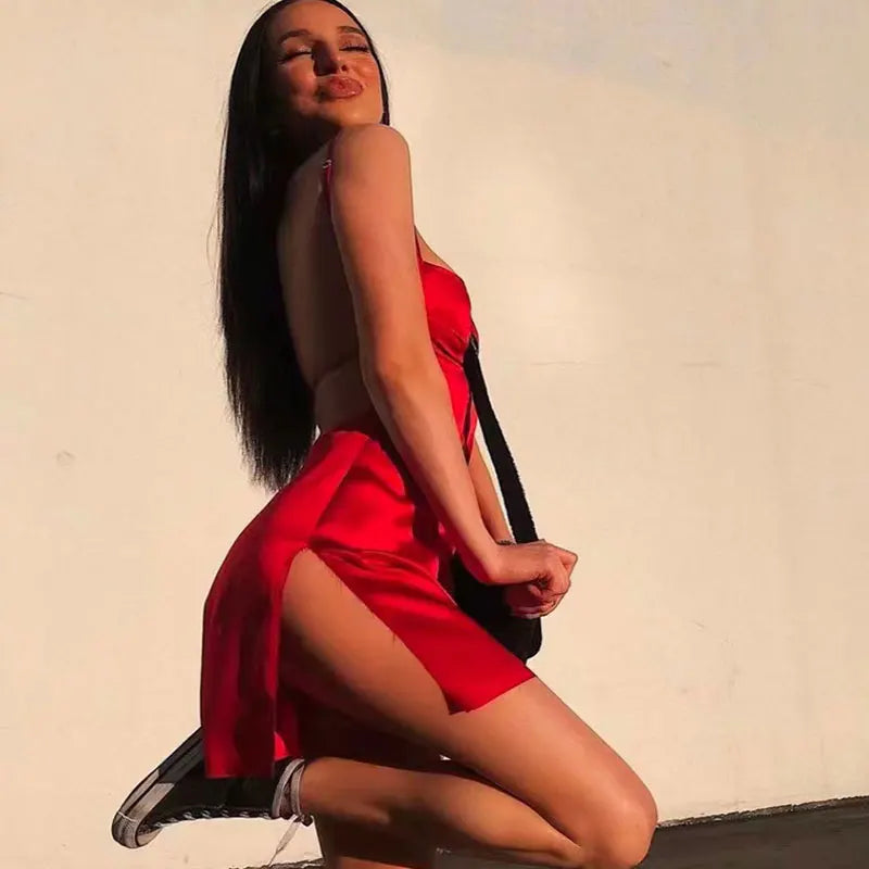 Robe mini sexy en satin dos nu, pyjama tendance pour femme, tenue d'été élégante avec fente et bandage, idéale pour la maison, décontractée et douce, style gothique