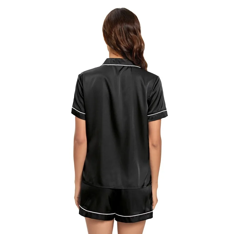 Pyjama d'été en satin de soie pour femme, ensemble haut boutonné et short, 2 pièces, vêtements de nuit à col cranté, vêtements de nuit pour femmes